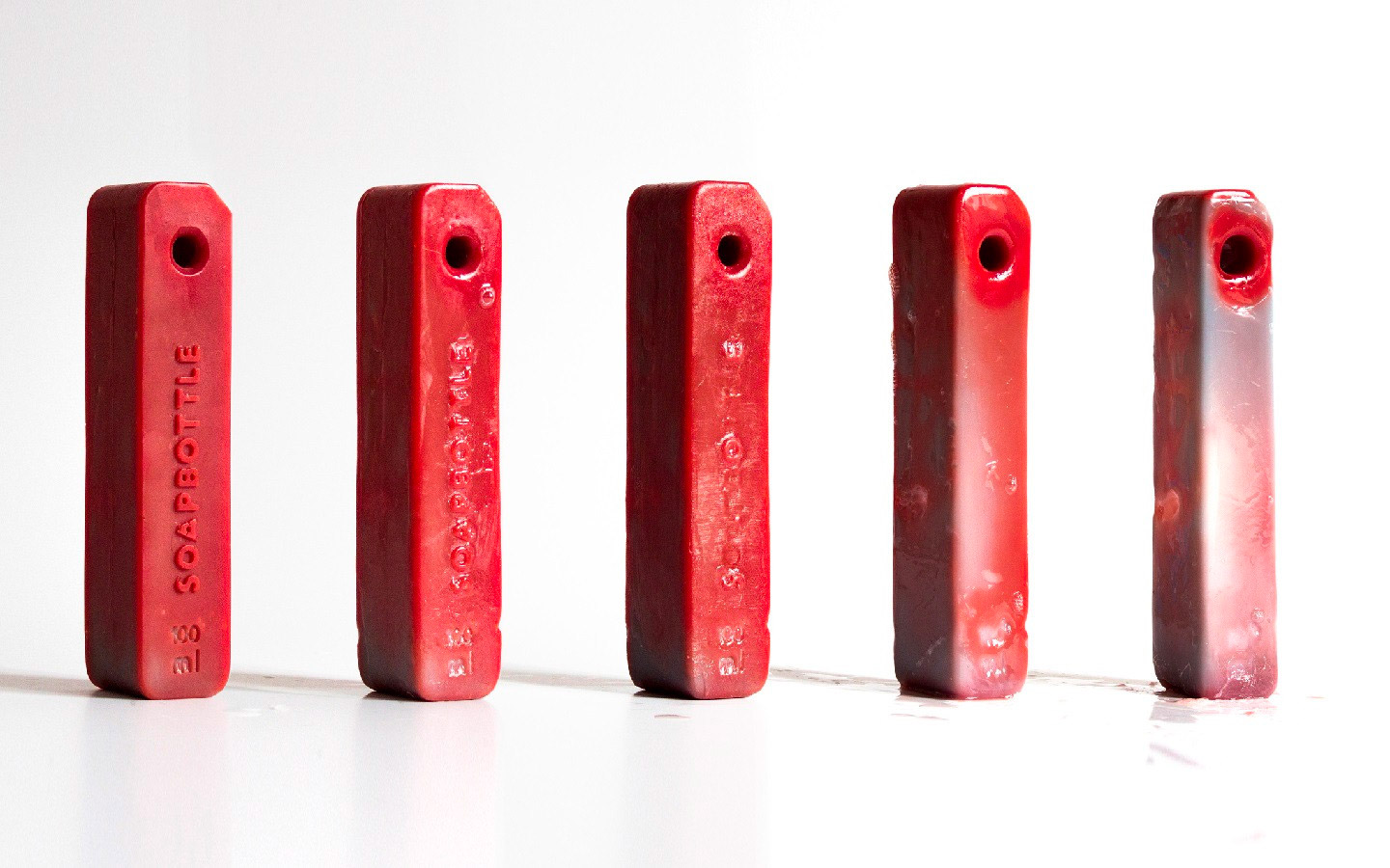 SOAPBOTTLE 在設(shè)計(jì)中加入了無包裝化妝品的概念,具體方式是將產(chǎn)品本身成為其自身的包裝。采用天然材料制作的香皂具有可生物降解的特性,因此可以完全避免垃圾產(chǎn)生。它外部的包裝由肥皂制成,隨著時(shí)間的推移會逐漸降解。與傳統(tǒng)的塑料容器不同,它不會留下任何廢物,也不會導(dǎo)致任何環(huán)境污染。每個(gè)瓶子的頂部都有一個(gè)孔可讓細(xì)繩穿過,從而提供了簡單且可重復(fù)使用的存儲方法。當(dāng)液體用完后,剩下的部分還可以當(dāng)作洗手香皂使用,或是再次加工成其它洗滌劑或清潔劑使用。